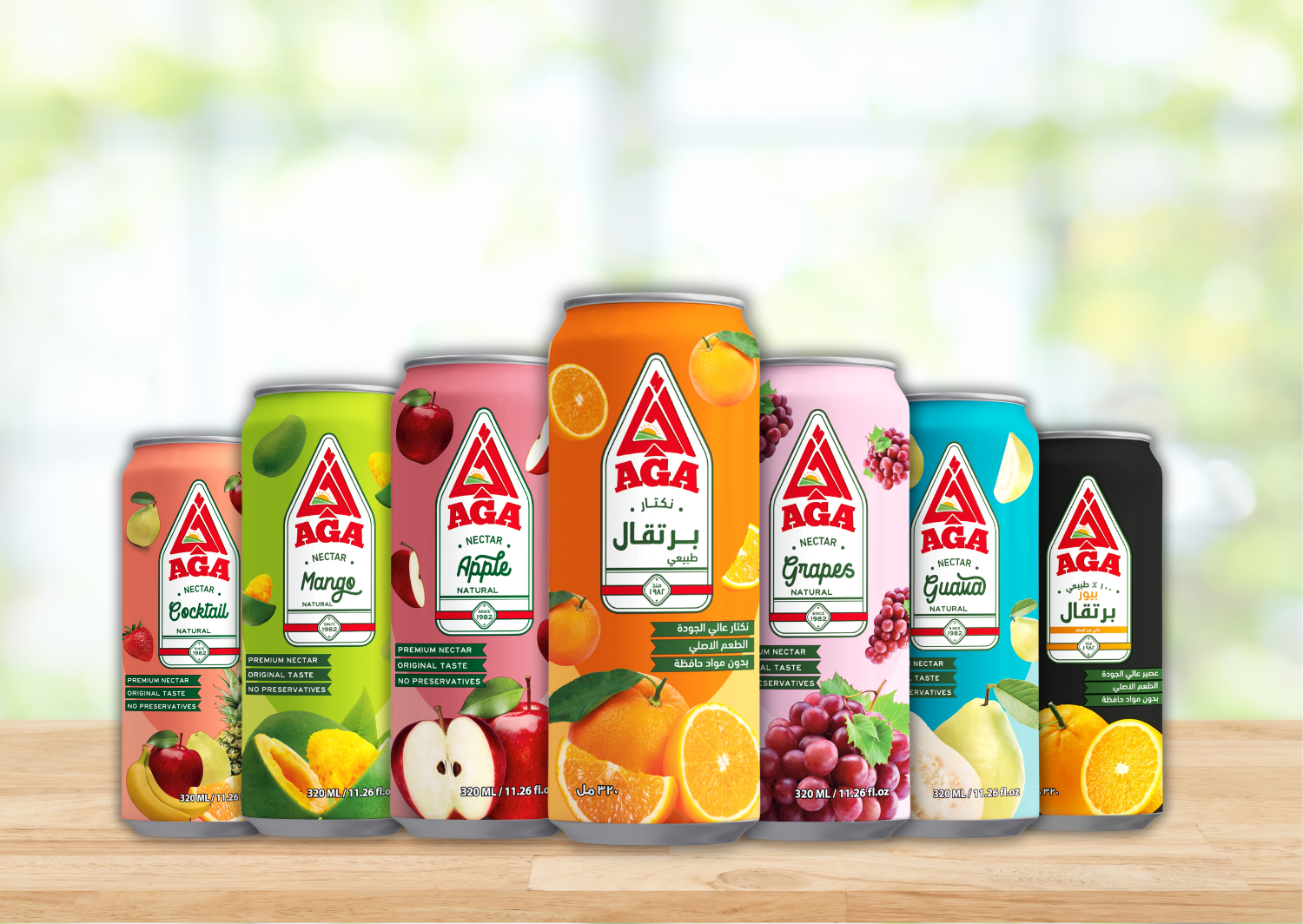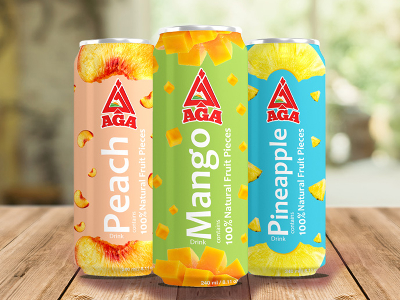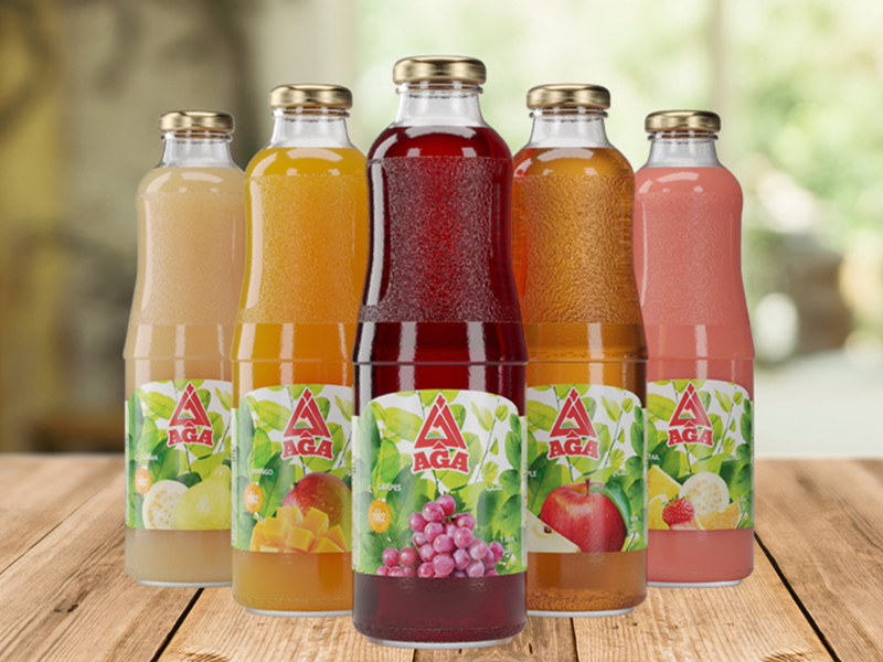 AGA Juices AGA provides an exceptional wide variety of Natural Juices, Pieces Juices, and Drinks in different sizes: 190 ml, 240 ml, 250 ml, 330ml, and 1L. View Brochure 240 ml Can (Pieces) 1L Glass 250 ml Glass 320 ml Can 250 ml Tetra-Pack 190 ml Doy-Pack